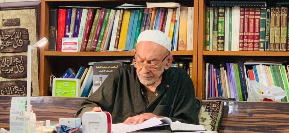 العلامة المرحوم الأستاذ الأول المتمرس الدكتور محمد حسين علي الصغير. الصورة: أحمد علي الحلي/ قناة التراث والتحقيق بين يديك في التليكرام