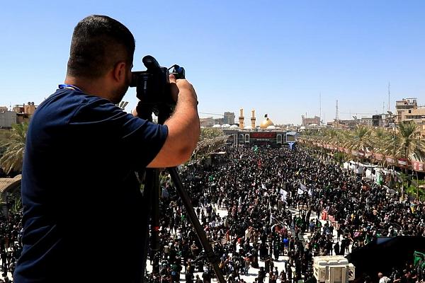 مصور يصور بين الحرمين، كربلاء المقدسة. الصورة: شبكة الكفيل العالمية