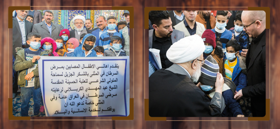 وجه ممثل المرجعية الدينية العليا الشيخ عبد المهدي الكربلائي بالتكفل بعلاج (٢٠) طفلا محاربا للسرطان من محافظة المثنى فور وصولهم الى مرقد الامام الحسين عليه السلام مساء اليوم السبت (٧ كانون الثاني/ يناير ٢٠٢٣).