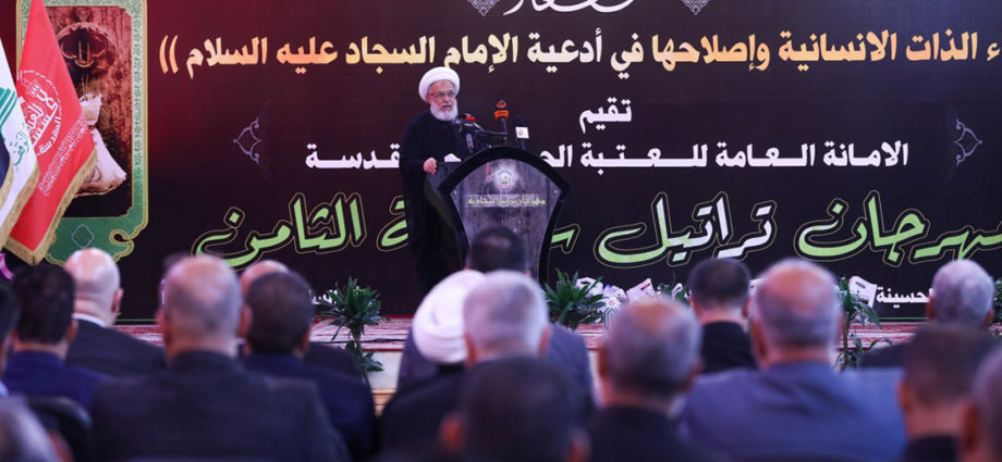 كشف ممثل المرجعية الدينية العليا، والمتولي الشرعي للعتبة الحسينية المقدسة، الشيخ عبد المهدي الكربلائي، عن اسباب ودواعي اقامة مهرجان تراتيل سجادية وللعام الثامن على التوالي، جاء ذلك خلال كلمة له في حفل الافتتاح الذي أقيم في الصحن الحسيني الشريف والذي شهد حضورا فاعلا محليا ودوليا.