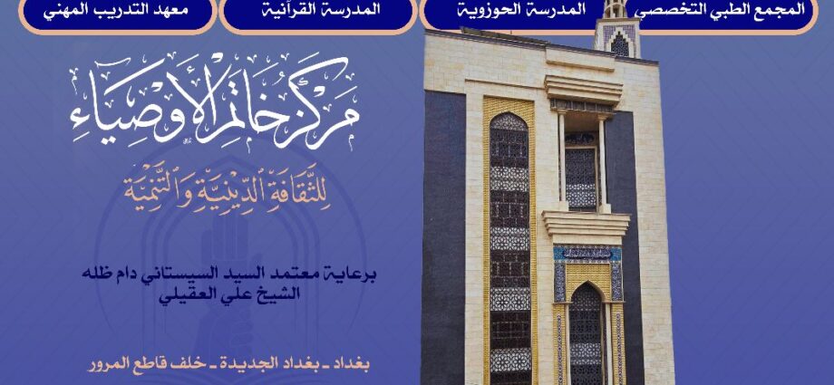 في خطوة إنسانية مباركة، وبإشراف المرجعية الدّينية العليا في النّجف الأشرف، أعلن مركز خاتم الأوصياء للثقافة الدّينية والتّنمية، وبرعاية سماحة الشّيخ علي العقيلي (دامت بركاته)، معتمد سماحة المرجع الدّيني الأعلى آية الله العظمى السّيّد علي الحسيني السّيستاني (دام ظلّه)، عن بدء استقبال المراجعين في المجمع الطّبي التّخصصي الخيري الواقع في منطقة بغداد الجديدة، في العاصمة العراقية بغداد، لتقديم الخدمات الطّبية المجانية للعوائل المتعففة.