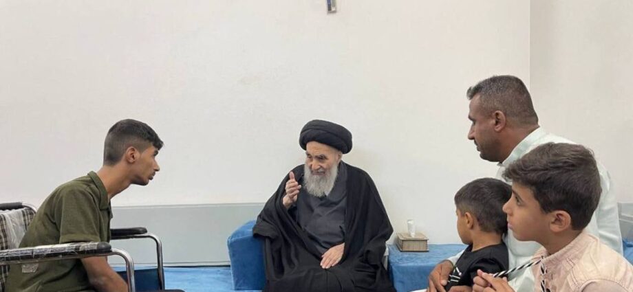 سماحة المرجع الديني الأعلى آية الله العظمى السيد علي الحسيني السيستاني دام ظلّه يستقبل الطالب سيف الدين سعد ووالده وبعض من أخوته في النجف الأشرف