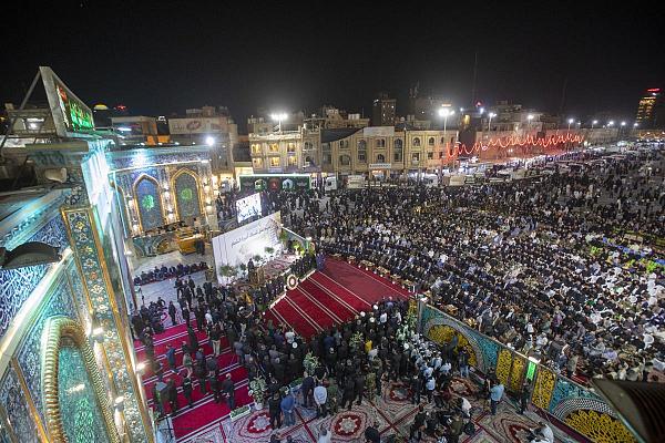 وأُقِيمت المراسيم في الباحة المطلّة على بوّابة القبلة لمرقد أبي الفضل العبّاس(عليه السلام)، بحضور سماحة المتولّي الشرعيّ للعتبة العبّاسية المقدّسة السيّد أحمد الصافي (دام عزّه)، والسيّد رئيس ديوان الوقف الشيعيّ الدكتور حيدر الشمّري ومحافظ كربلاء السيّد نصيف جاسم الخطابي، والأمينين العامّين للعتبتين المقدّستين الحسينيّة والعبّاسية، وعددٍ من أعضاء مجلسَيْ إدارتهما ورؤساء أقسامِهِما، وسطَ مشاركةِ جموعٍ غفيرة من الزائرين وأهالي كربلاء الكرام.