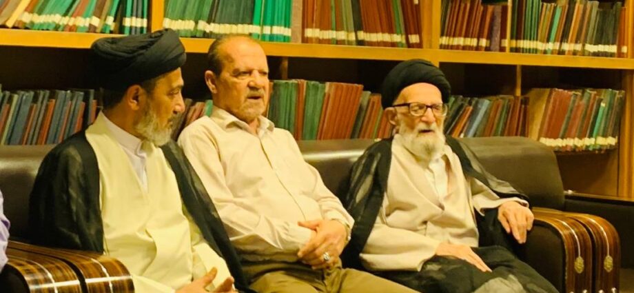 العلّامة السيّد أحمد الحسينيّ الأشكوريّ (شيخ المفهرسين) في مكتبة الإمام الحكيم العامّة في ١٢ شوال ١٤٤٤هـ الموافق ٣ أيار ٢٠٢٣ م. الصورة: قناة التراث والتحقيق بين يديك في التليكرام