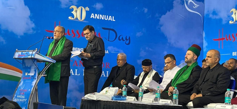 وقال موفد العتبة الحسينية المقدسة الدكتور سعد الدين البناء في حديث للموقع الرسمي، إن “مؤتمر يوم الحسين (عليه السلام) الذي اقيم في الهند بدورته الـ(٣٠) والذي أقيم تحت شعار (قابل الكراهية بالحب)، شهد في ختام فعالياته اهداء رايتي الإمام الحسين، واخيه العباس (عليهما السلام) من قبل وفد العتبتين المقدستين الحسينية والعباسية المشاركان في المؤتمر، وذلك بحضور العديد من ممثلي الديانات والطوائف الهندية”.