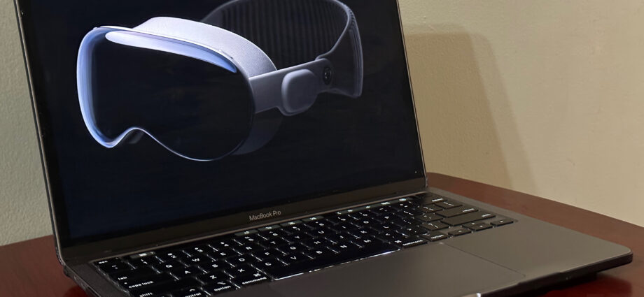 The Apple Vision Pro headset on a Mac Book Pro. Photo by The-14.