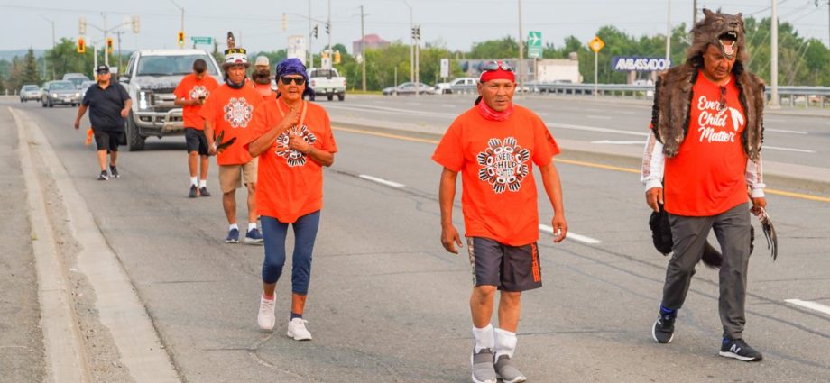 Chief Vern Janvier has walked nearly 200 kilometres in a 500-kilometre journey to Parliament Hill to raise awareness of the residential school system’s impacts on Indigenous communities and protest the Indian Act. He is walking with 12 community members and supporters. After starting his journey in Sudbury on July 18, he has already worn out a pair of shoes.