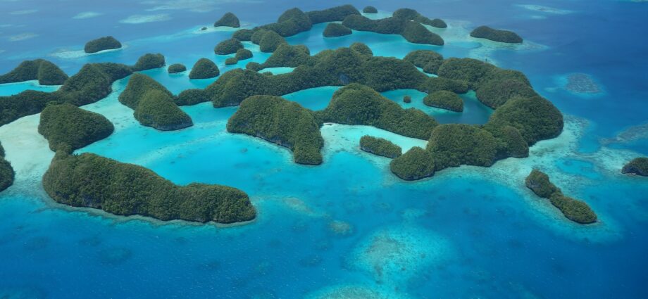 Aerial view of Ngerukewid, Palau. Luka Peternel/ Wikimedia Commons.