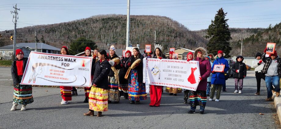 ESKASONI — Eskasoni residents marched on Sunday from the community health centre’s healing garden to Allison Bernard Memorial High School wearing red toques and holding signs featuring the faces of Indigenous women and men across Canada who never came home.