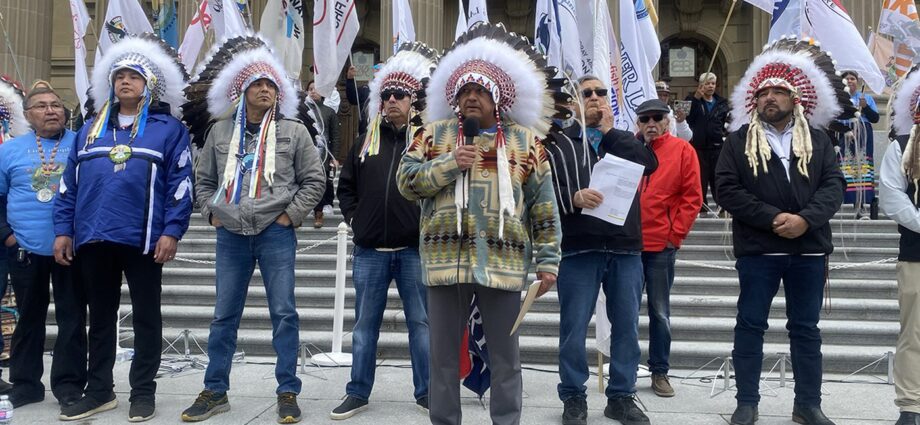(ANNews) – Hundreds of people attended a rally that First Nations leaders from across Alberta organized at the Legislature in Edmonton to protest the premier’s ongoing separatist threats, which every speaker agreed would run roughshod over Treaty rights.
