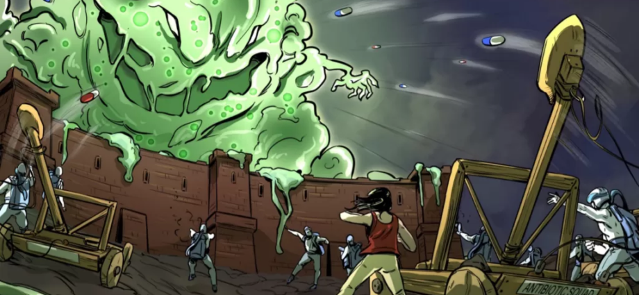 Imagine antibiotics as soldiers fighting bacteria on the battlefield.