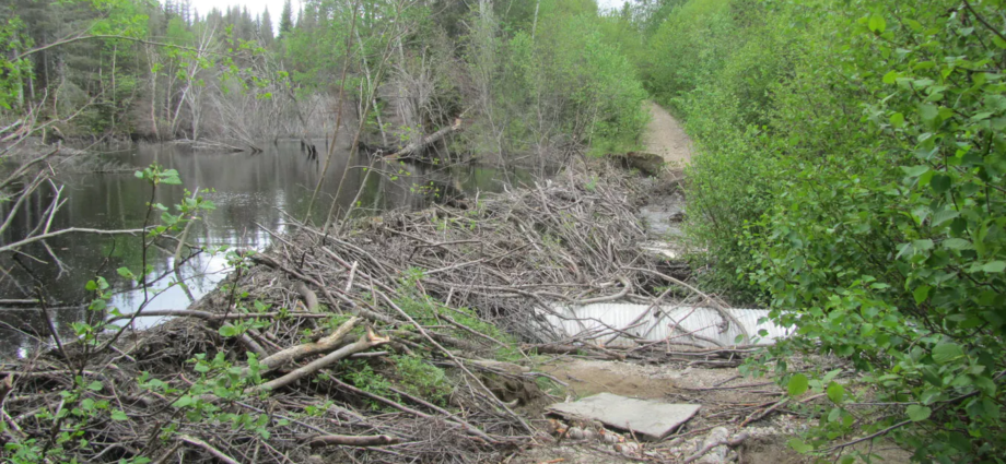 An abandoned forest road that has become impassable due to the washout of the culvert fill. The beaver dam has also contributed to road erosion. (Forest Hydrology Laboratory of Université Laval), Author provided