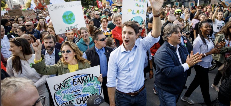 Liberal Leader Justin Trudeau, pictured above at a climate march in 2019, is looking to gain or maintain seats in B.C., where the climate crisis is top of mind for a quarter of the voters. File Twitter photo