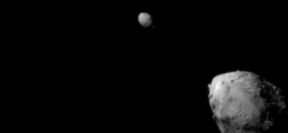 The first images, taken by a camera aboard DART, show the double asteroid system of Didymos – about 2,500 feet (780 meters) in diameter – being orbited by the smaller asteroid Dimorphos that is about 525 feet (160 meters) long.