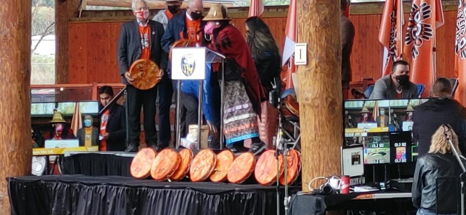 (ANNews) – As the rain fell on a somber and chilly morning, the Tk’emlúps te Secwe̓pemc welcomed Canada, and the world, back to their territory. Traditional song and jingle dancers welcomed the orange clad crowd to the inaugural National Day for Truth and Reconciliation. A fitting continuance of the journey started in May 2021 when the world learned of the remains of 215 children lost to the Kamloops Indian Residential School.