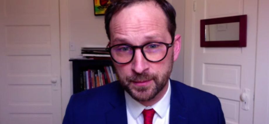 Ryan Meili criticized the Saskatchewan Party government for its jobs performance, even though the pandemic has not been resolved. Screen capture via Zoom
