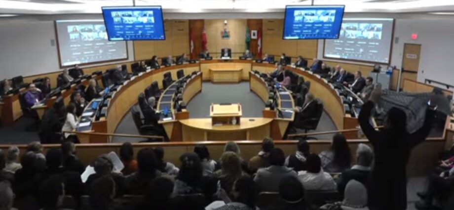 The council chamber at Niagara Region headquarters was in an uproar Thursday after council chose to remove an item from the agenda, a motion brought forward by St. Catharines representative Haley Bateman asking the regional government to call for an immediate ceasefire in the Palestine-Israel conflict.
