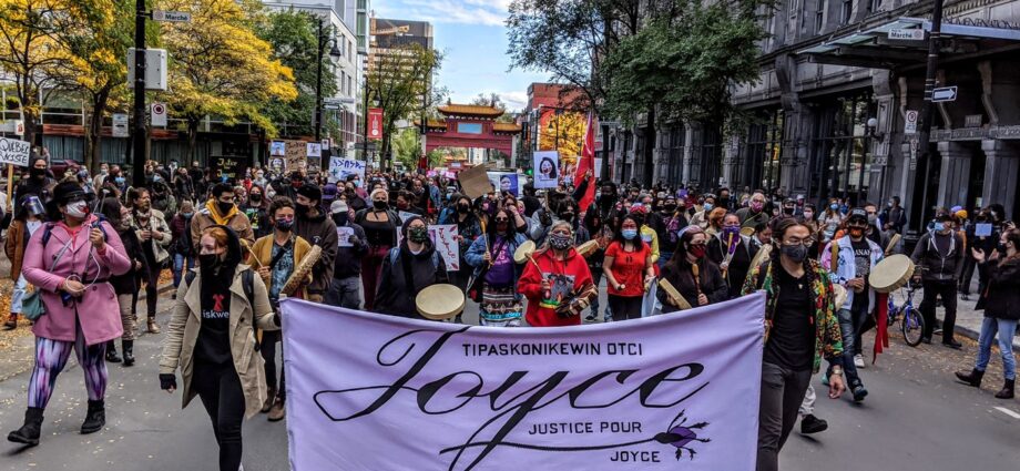 On October 2020, Montreal is currently in the COVID-19 red zone, but it didn’t stop a large number of protesters from gathering on Saturday to demand Justice for Joyce Echaquan. Photo: Virginie Ann, Local Journalism Initiative Reporter, The Eastern Door