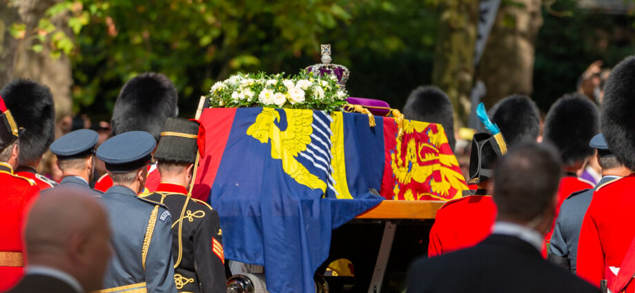 Procession from Buckingham Palace to the lying-in-state of Queen Elizabeth II at Westminster Hall. Photo by Katie Chan/ Wikimedia Commons. (CC BY-SA 4.0)