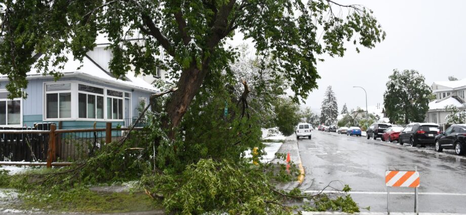 The town’s Operations Department had its own crews out clearing downed trees from public sidewalks and streets. It was working with ATCO and Parks Canada to address hazards and deal with trees that had fallen on power lines.