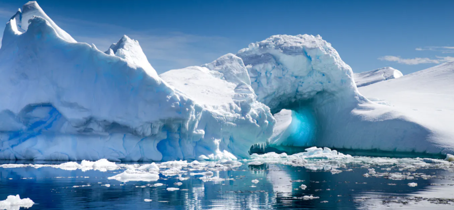 The ice-covered continent of Antarctica, surrounded by the Southern Ocean, holds 90 per cent of the world’s ice.