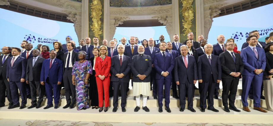 World leaders pose for a group photo during the Artificial Intelligence Action Summit at the Grand Palais in Paris, France on Feb. 11, 2025. Photo by Press Information Bureau. Government of India