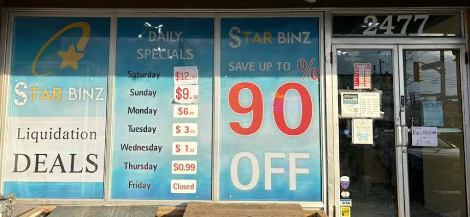 The front of the Star Binz liquidation store in Toronto. Merchandise at these stores comes from major retailers and online platforms, which are purchased through liquidation auctions and resold. (Chris Lo), CC BY