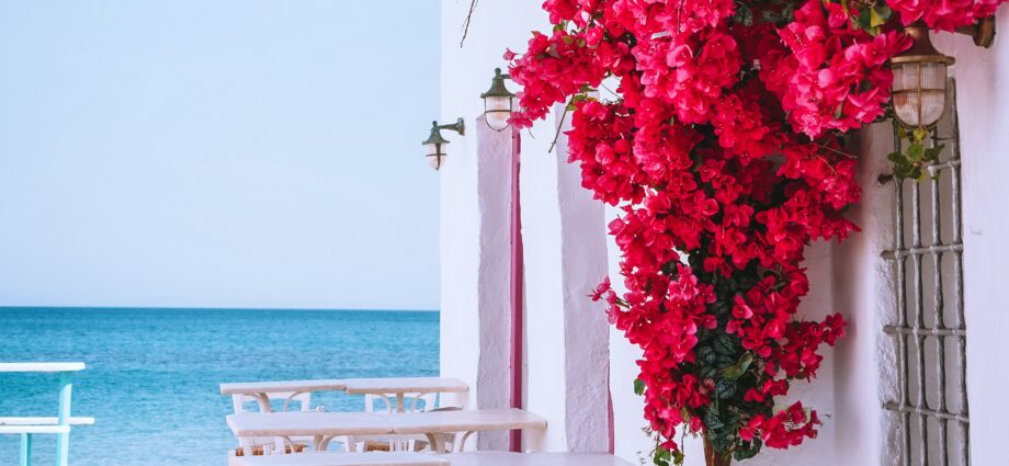 Table near the sea in Paros Cyclades. Paros, one of the sustainable islands in Greece. Photo by Michail Tsapas on Unsplash.