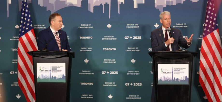 US Energy Secretary Chris Wright (right) and EPA Administrator Lee Zeldin speak at the G7 energy and environment ministers meeting in Toronto on Oct. 31, 2025. Photo by Abdul Matin Sarfraz, Local Journalism Initiative, Canada’s National Observer