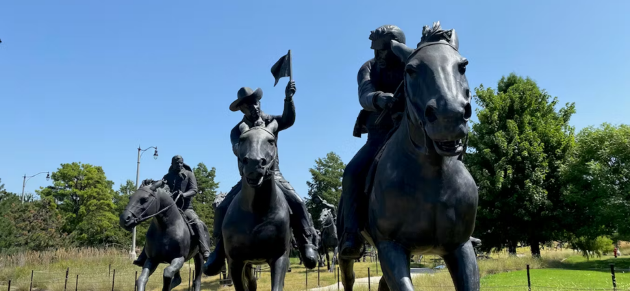 An invasion of white settlers into lands formerly designated as Indian Territory is commemorated at the Oklahoma Land Run monument in Oklahoma City. (Russell Cobb), CC BY