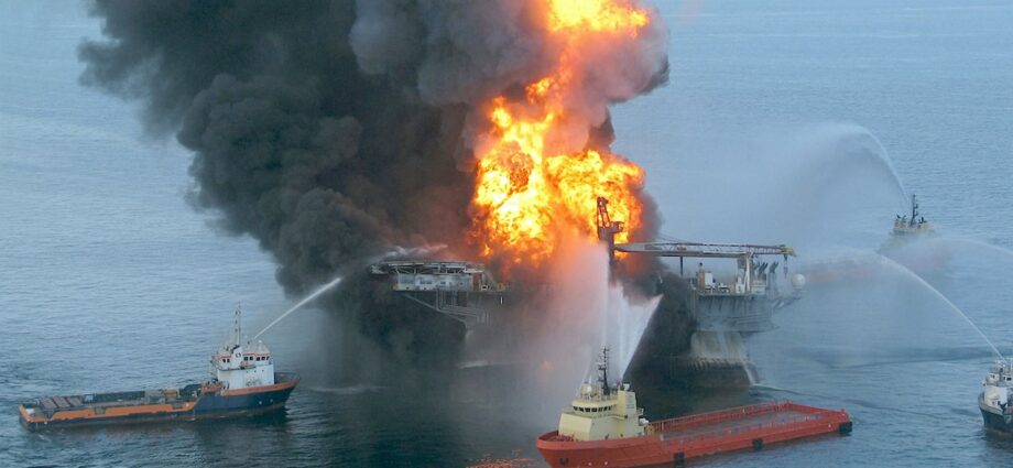 Oceans are the planet’s greatest carbon sink, absorbing up to 30 per cent of the human-caused greenhouse gas emissions fuelling the climate crisis. Photo of Deepwater Horizon fire / US Coast Guard / Wikipedia